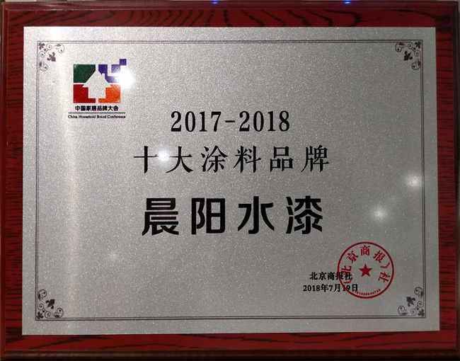 “2017-2018中國,晨陽水漆再度榮膺“中國十大涂料品牌”